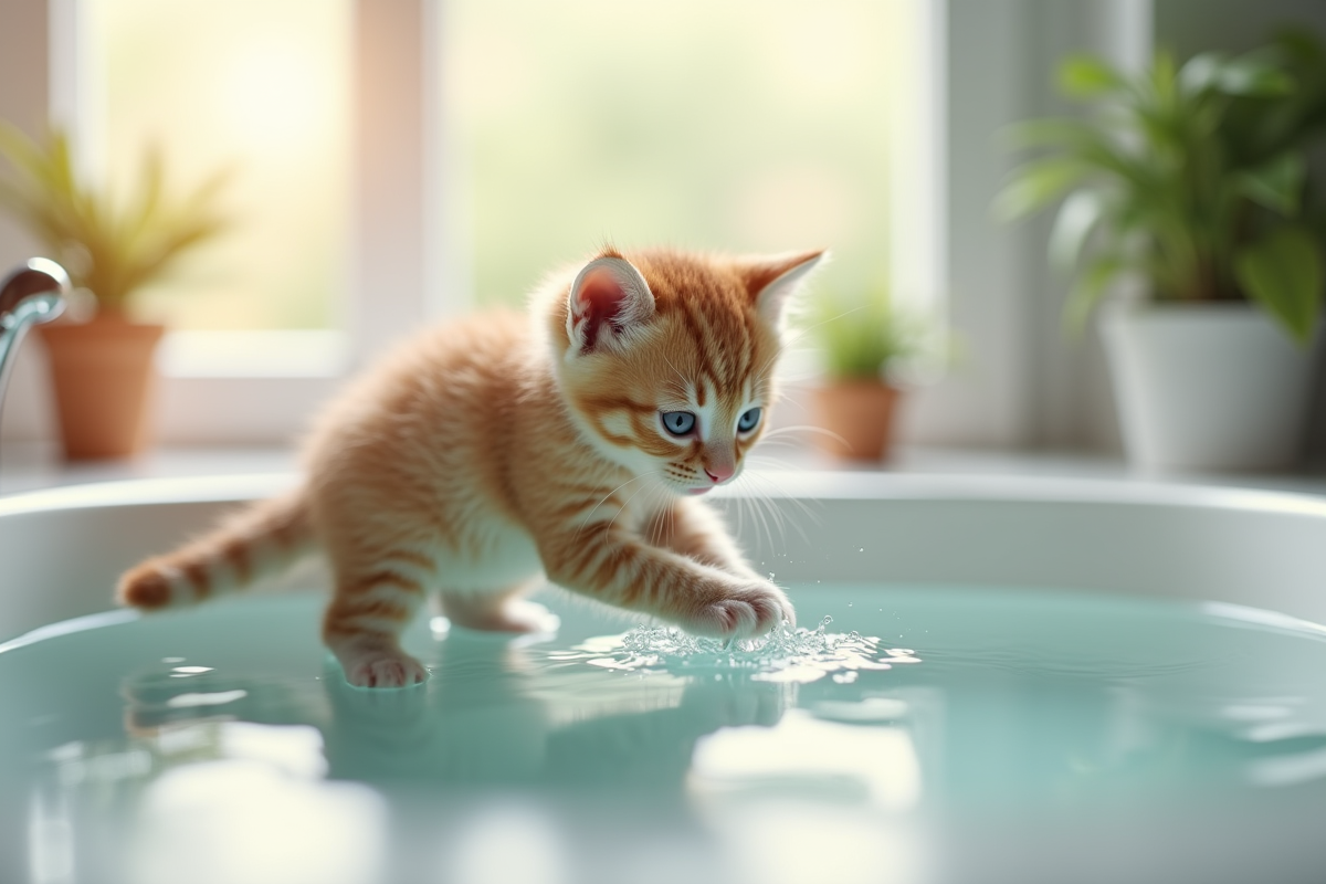 Pour apprivoiser la peur de l’eau, il s’agit d’introduire l’humidité dans la vie du chaton par étapes. Commencez par de petites touches : un bol d’eau à proximité de ses jouets, un filet d’eau qui s’écoule dans l’évier, ou encore un gant de toilette légèrement humide appliqué sur le dos. Ces petits rituels du quotidien créent un climat de confiance, sans brusquer l’animal. L’exposition progressive offre au chaton la possibilité de s’habituer, tout en gardant le contrôle sur son environnement.